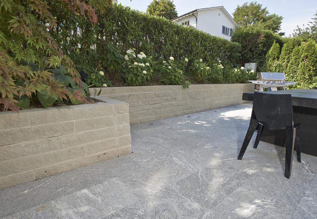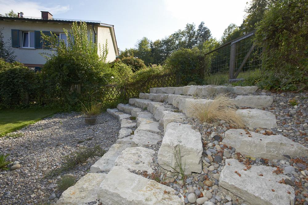 Tanner Gartenbau AG verwendet Natursteine unter anderem für Pflästerungen, Bodenplatten für Wege und Plätze, im Kiesbett oder in Mörtel verlegt, für Natursteinmauern zur Terrassierung oder freistehend, zur Herstellung von Treppen im Garten und als Füllmaterial für Gabionen, oder einfach als dekoratives Gestaltungselement z.B. mit einem Findling