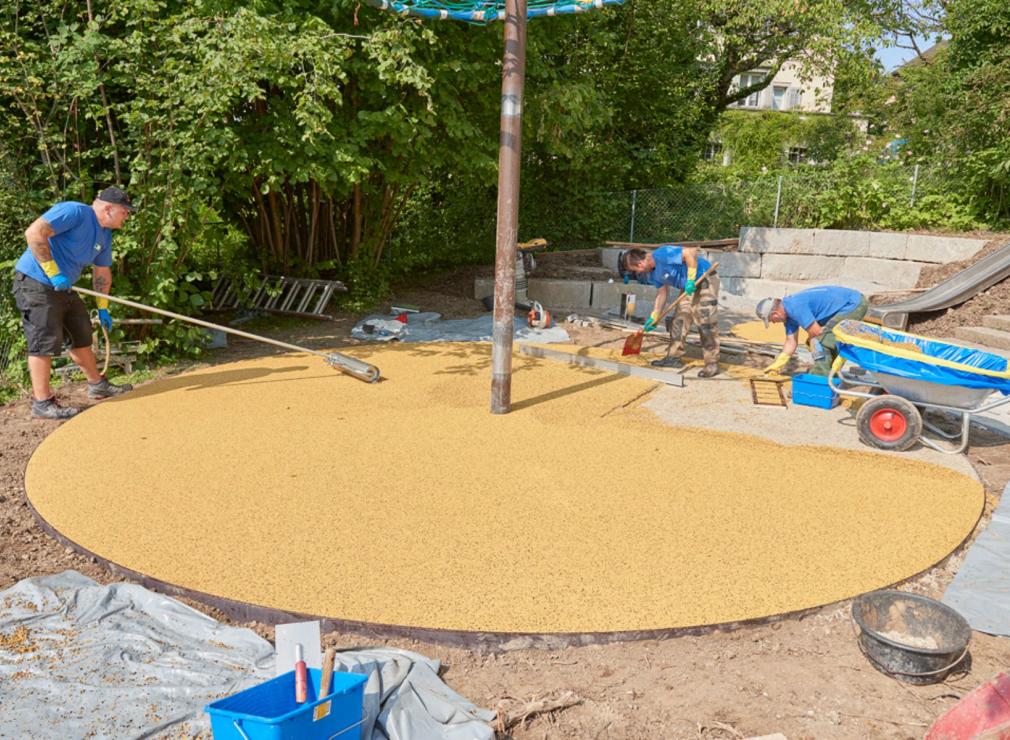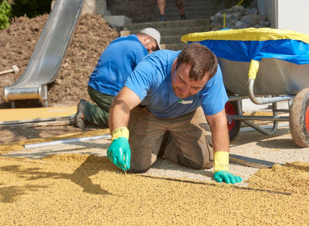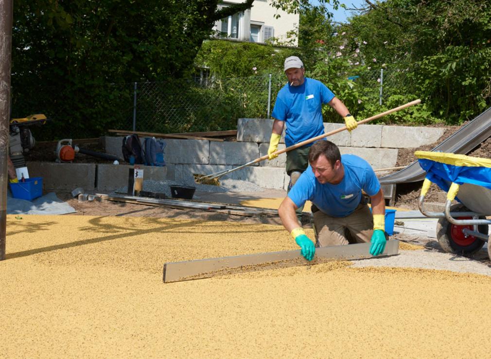 Die hochwertigen Rohmaterialien stellen wir in verschiedenen Kombinationen zusammen und verbauen diese vor Ort zu einer homogenen Fläche. Diese geprüften Bodensysteme erfüllen sämtliche Ansprüche an Sicherheit, Funktionalität und Exklusivität.